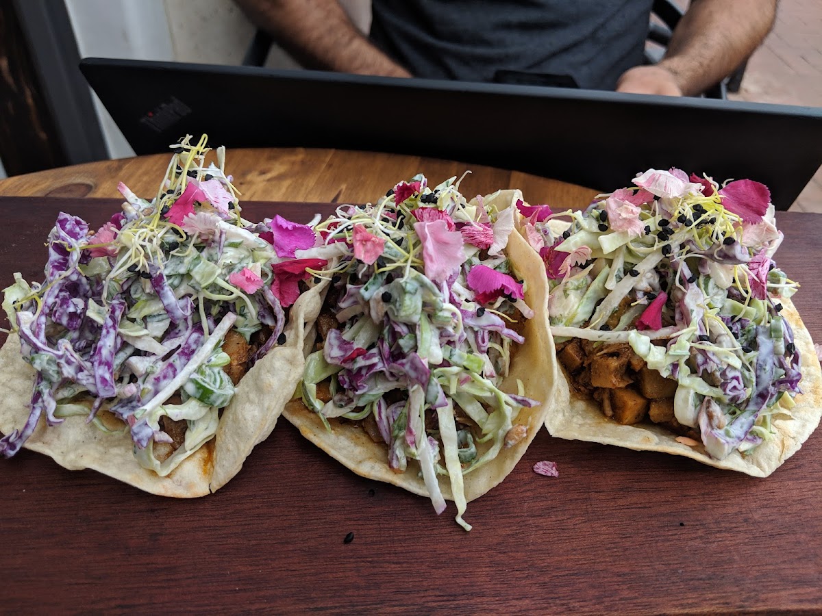 Some of the best vegetarian food I've ever had, and a beautiful place to enjoy the sunset! We had the tomato confit, charred broccolini, and cheese plate - all were absolutely incredible; even my non-vegetarian friend loved the food. Nice wine selection, friendly staff, and a lovely spot by State Street - an amazing introduction for a first-time visitor to Santa Barbara!