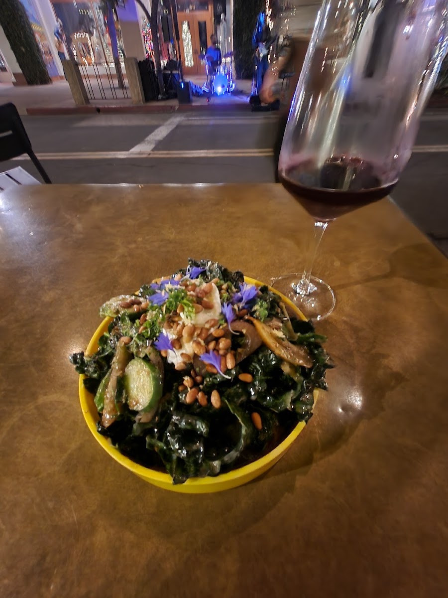 stopped in on our way back from the farmers market and my friend and i were so pleased w the wine selection and food! service was great as well! we’ve been 3 times in our 5 day stay here def go check it out !! we tried the yoga pants salad and the spinach artichoke dip’